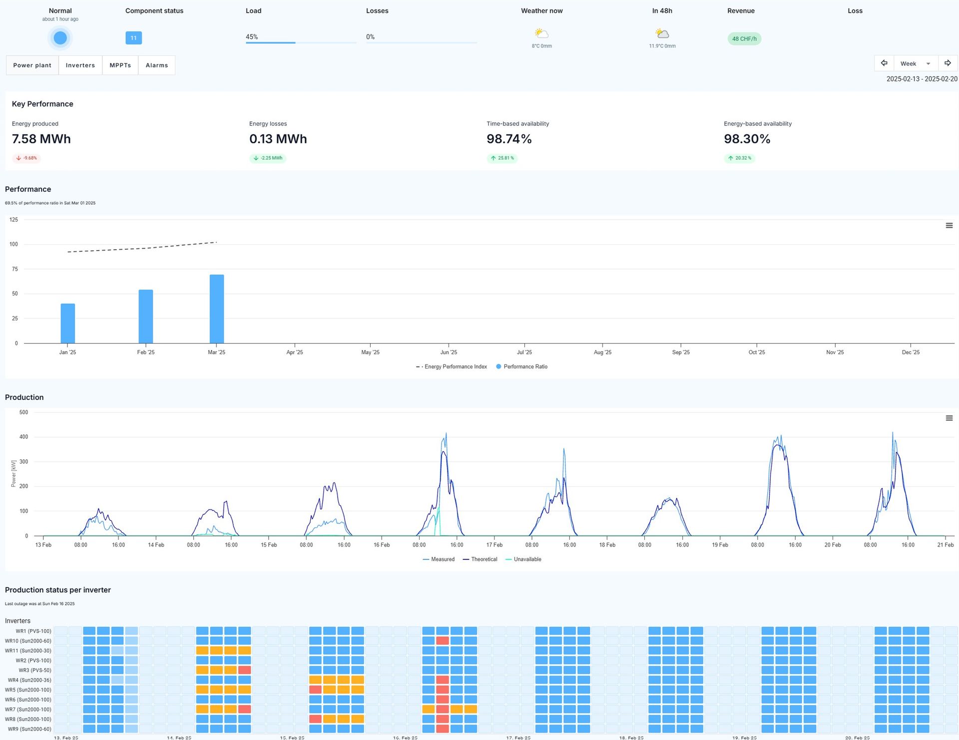 Unsere Lösung bietet eine breite Produktkompatibilität, die sich nahtlos in Ihre bestehenden Systeme und Anwendungen integriert und ist auch ideal für den Retrofit. Die Plattform ist kompatibel mit Solar-Log WEB Enerest sowie weiteren Datenlogger wie Webdyn, Meteocontrol, Huawei, Ardexa, und vielen anderen Systemen. So können Investoren und Betreiber unabhängig von der eingesetzten Technik alle Anlagen ihres Portfolios auf einer zentralen Oberfläche überwachen und analysieren – effizient, zeitsparend und herstellerübergreifend.